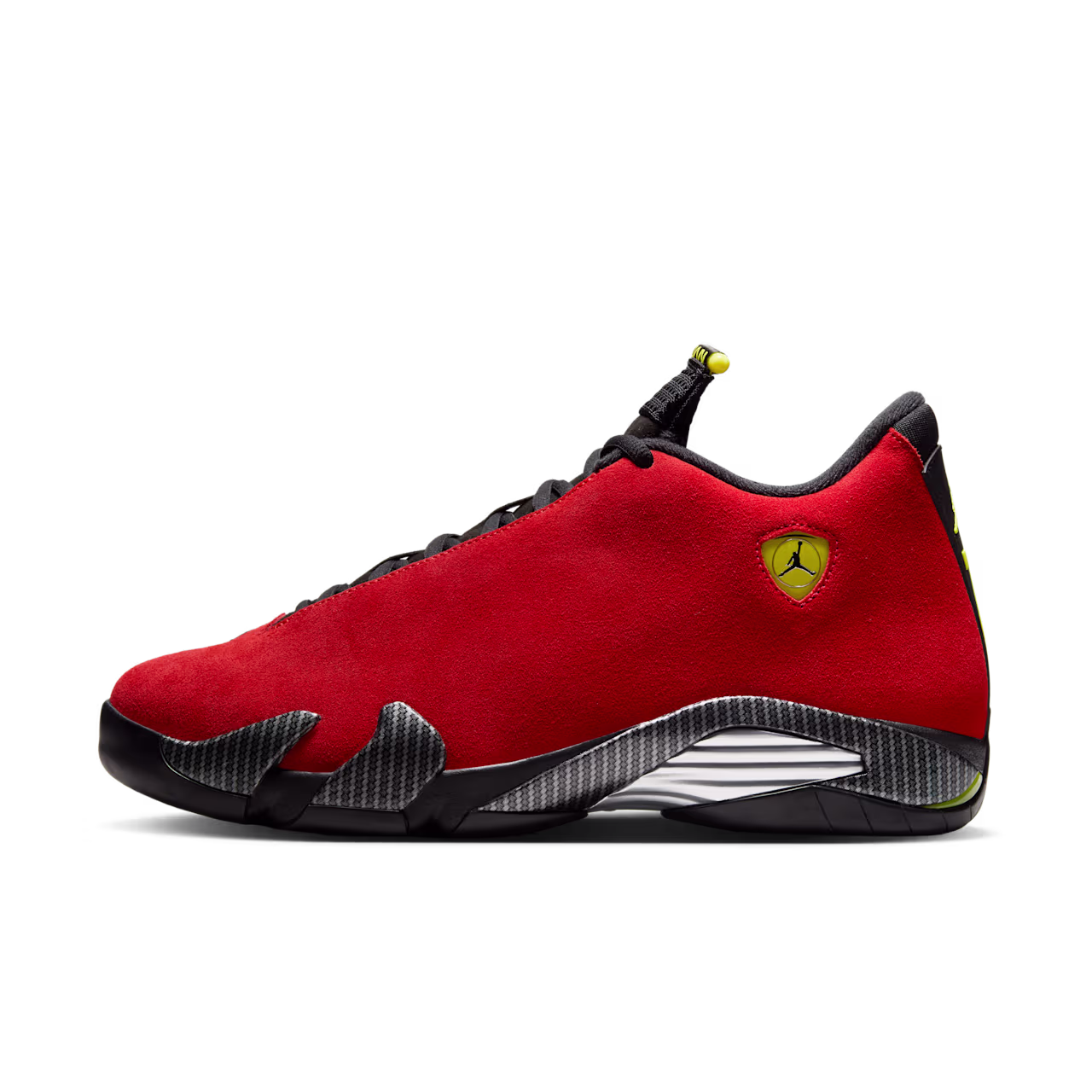 Rápido. Fuerte. Descarado de élite. El AJ14 “Challenge Red” se lanzó por primera vez en 2014 para complementar la afinidad de MJ por los coches deportivos. Fiel a su forma, el zapato de aros de ritmo rápido regresa con una parte superior de ante rojo Challenge y golpes deportivos de negro, amarillo vibrante y plata metálica. El elegante emblema de Jumpman y la marca 23 alimentan su fusión de lujo y velocidad.